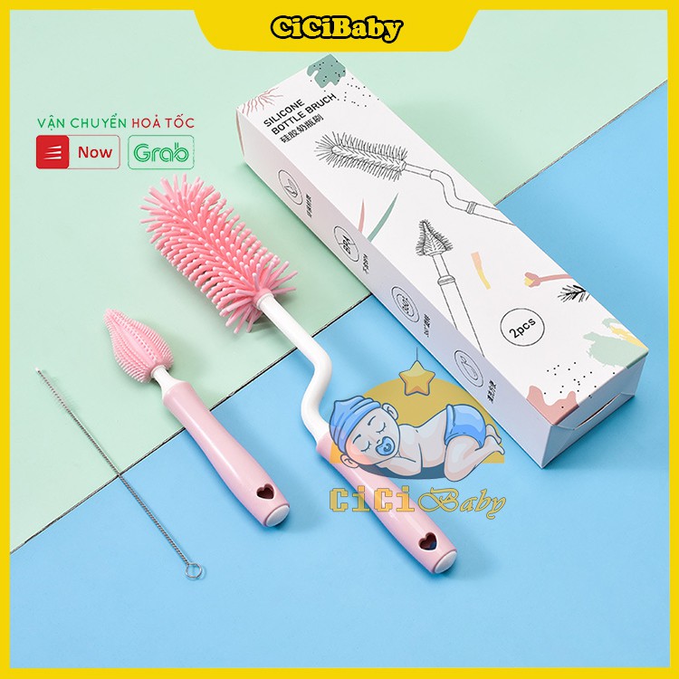 👑Tiệt Trùng Được👑 Cọ bình sữa Silicon cao cấp gồm 3 chi tiết có tay cầm xoay 360 độ dùng cho mọi loại bình free ship